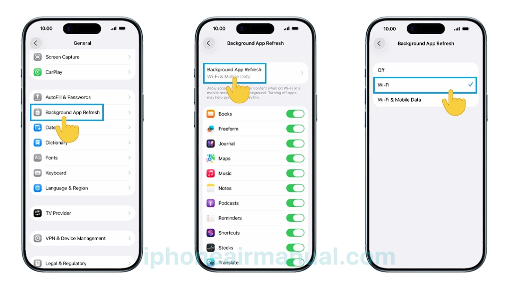 - Go to Settings → General → Background App Refresh.